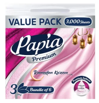لو بتدور على مناديل ورقية ناعمة، بعبوة عملية تحتوي على أكثر من قطعة، فـ بابيا مناديل ناعمة 3 طبقات – عبوة 6 قطع اختيار مناسب.