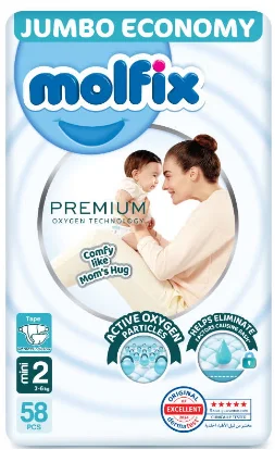 مولفيكس بريميوم أكسجين حفاضات أطفال مقاس 2 مينى – عبوة جامبو 58 حفاضة