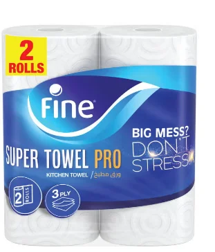فاين مناديل مطبخ سوبر تاول برو 3 طبقات – 2 رول بقوة امتصاص فائقة